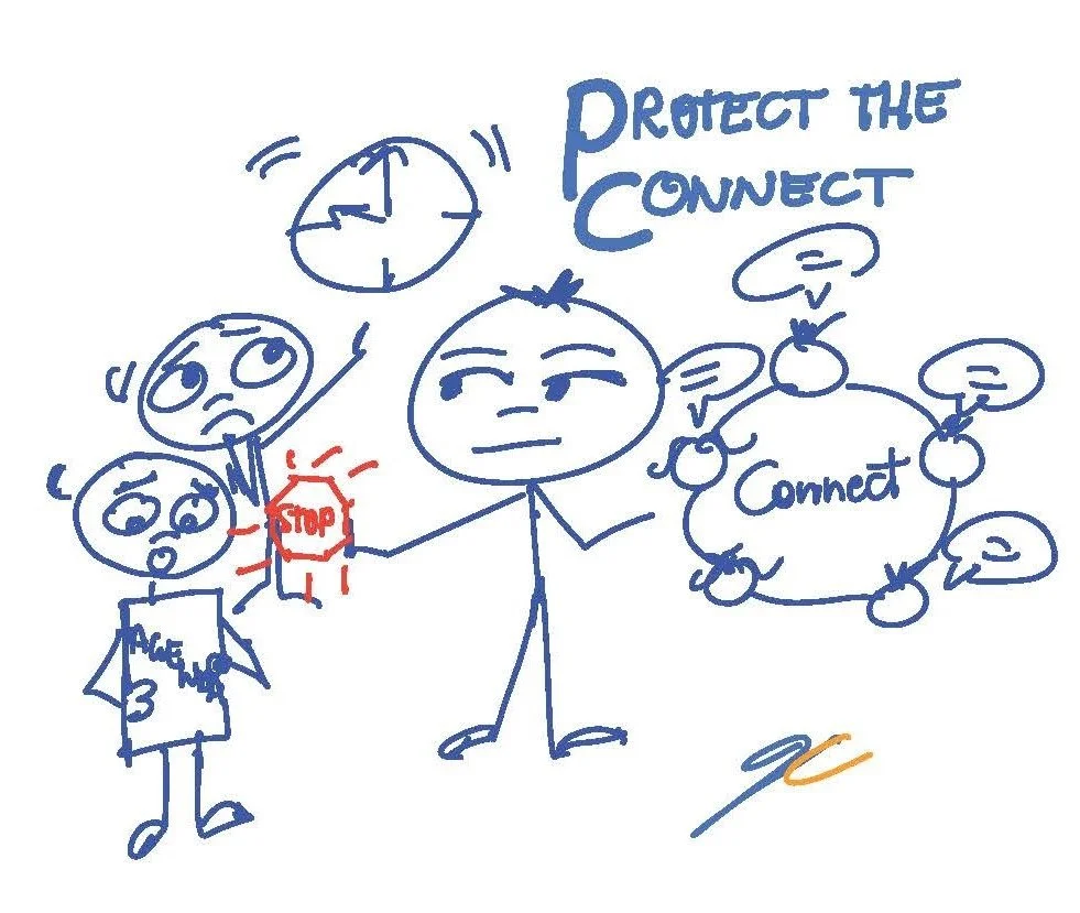 So, I draw on a range of connection activities. They can feature purposeful questions, solo thinking, chats in pairs or trios, movement and drawing. One of my favourites uses photos, phones and perspective. It guarantees deep connection (that trust), fast (that clock).